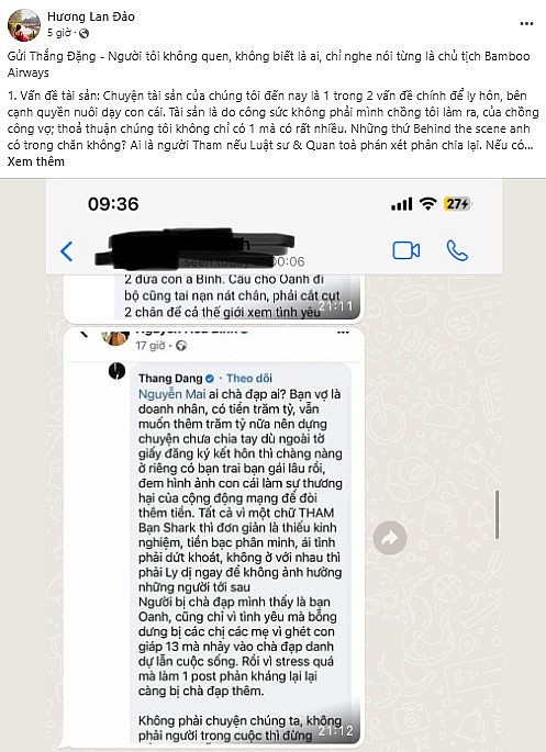 Cụ thể, trong chia sẻ của mình, bà Lan Hương cho biết vấn đề tài sản là 1 trong 2 vấn đề chính cần giải quyết trong chuyện ly hôn của mình, bên cạnh quyền nuôi dạy con cái. “Tài sản là do công sức không phải mình chồng tôi làm ra, của chồng công vợ, thỏa thuận chúng tôi không chỉ có một mà có rất nhiều” – nữ doanh nhân viết.