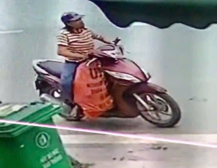 Trong lúc đang làm việc trên cao, nhân viên đã phát hiện một người phụ nữ đi xe Lead lấy túi đồ đựng dụng cụ của mình. Mặc dù đã tri hô, người phụ nữ này vẫn xách túi đồ và nhanh chóng rời khỏi hiện trường bằng xe máy.