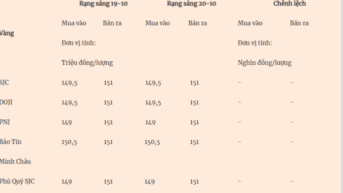 Giá vàng hôm nay 20/10/2025Trước đó