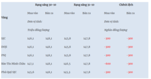 Giá vàng miếng trong nước cập nhật sáng 31-10 như sau: